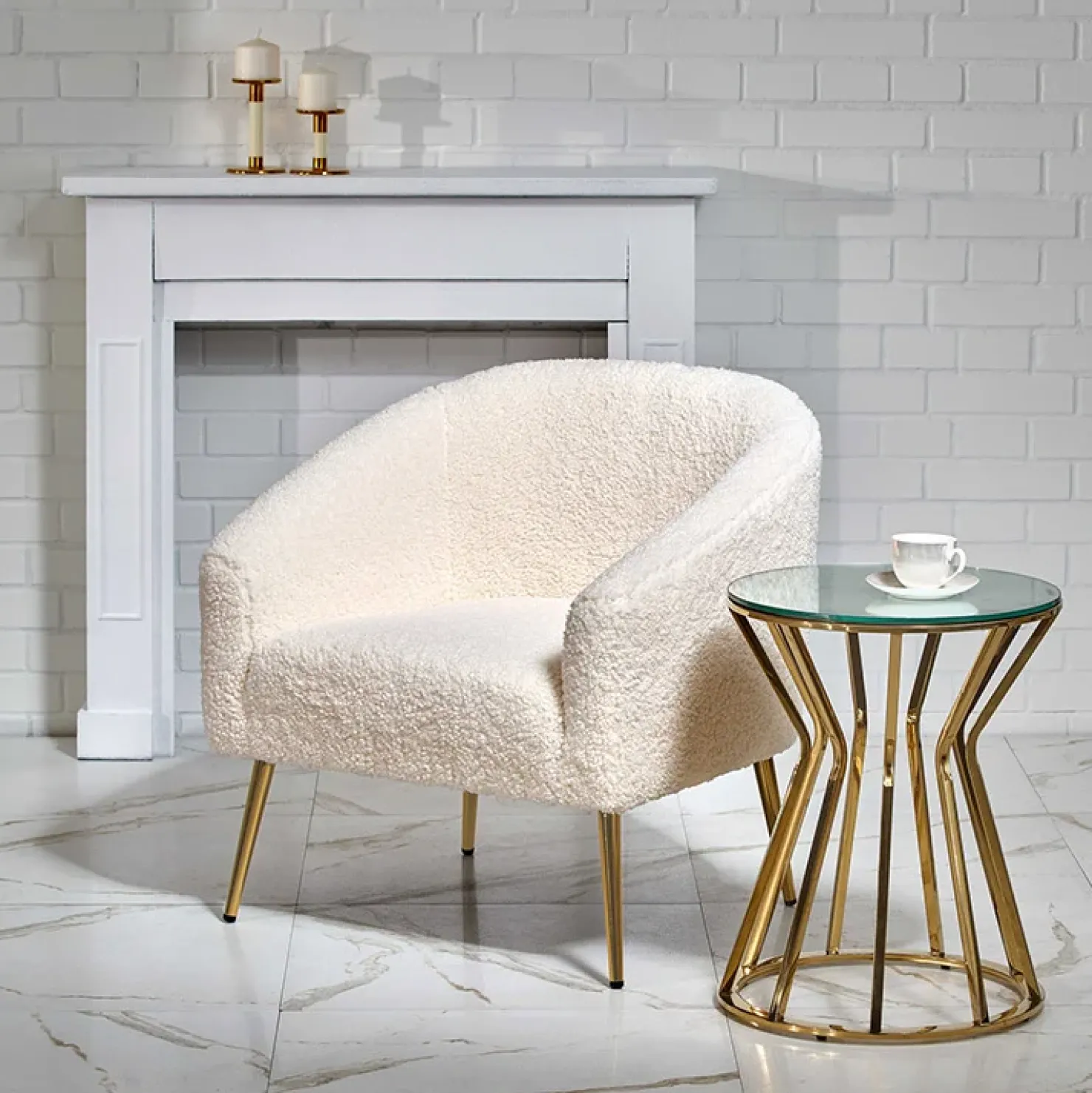 Poltrona da salotto in tessuto panna e acciaio oro Camel, ispirata allo stile nordico unisce stile e confort.