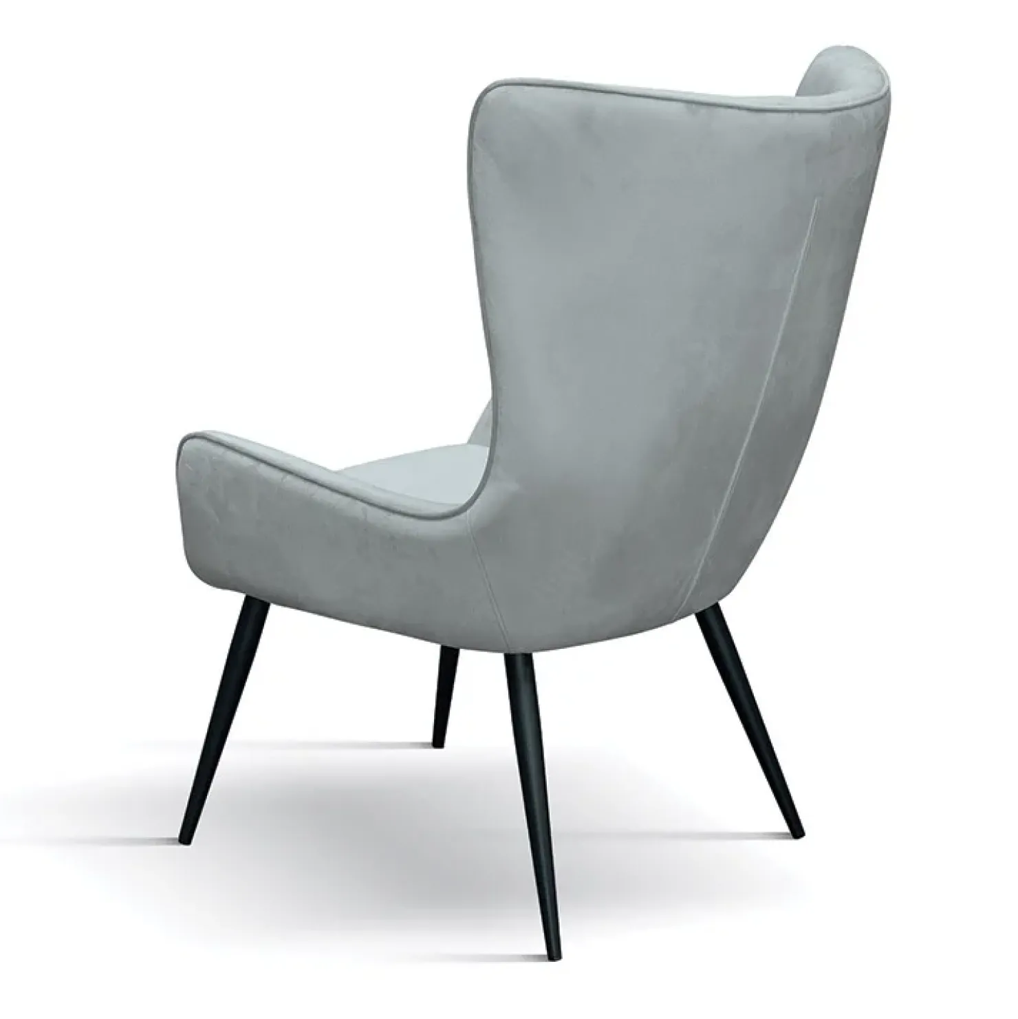 La Poltrona imbottita in velluto grigio metallo Jared è nota per la sua comodità grazie all’ampio schienale imbottito.