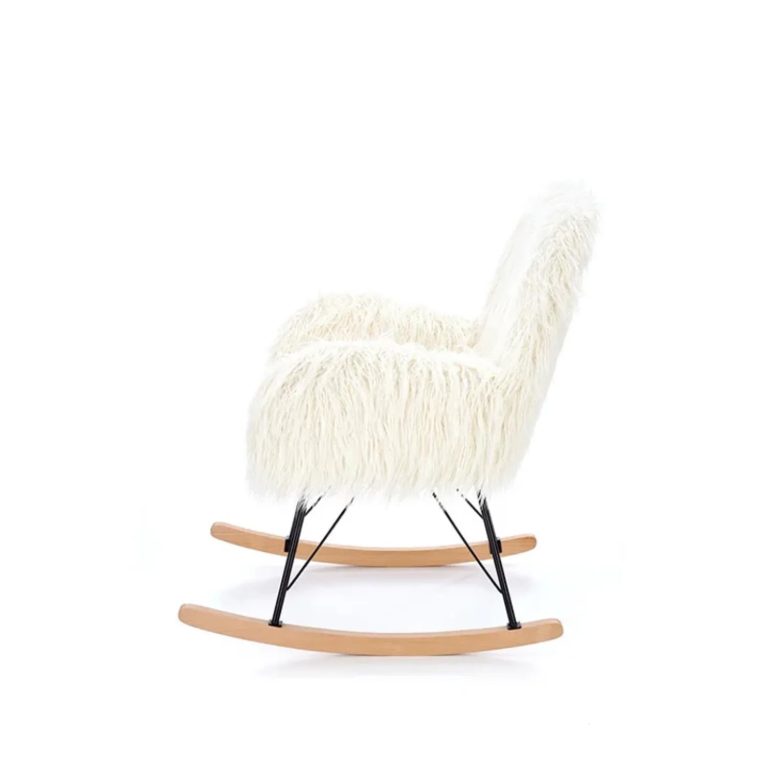 Garnero Arredamenti Poltrona sedia a dondolo design pelliccia bianco crema struttura legno metallo Winnipeg Online