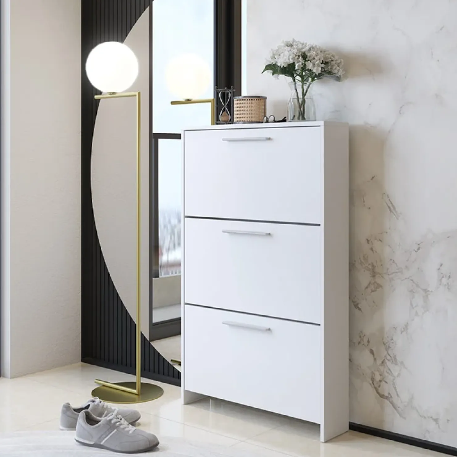 La scarpiera Benton è composto da tre ante ribaltabili. Elegante e dal design moderno, questa scarpiera si abbina perfettamente a diversi tipi di arredamento. È realizzata con pannelli di melaminico, che assicurano una lunga durata nel tempo. Approfitta di questa pratica scarpiera salvaspazio per mantenere le tue scarpe sempre in ordine!