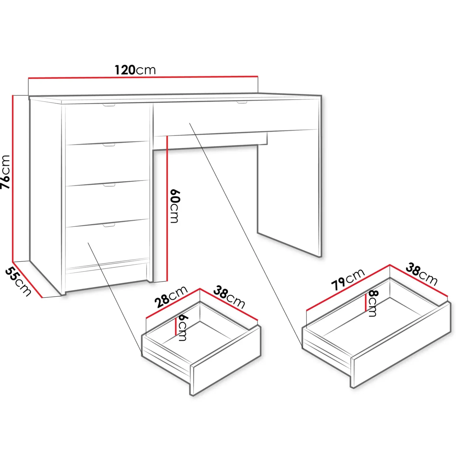 Garnero Arredamenti Scrivania 120x55cm con 5 cassetti cannettata Athena Bianco Sale
