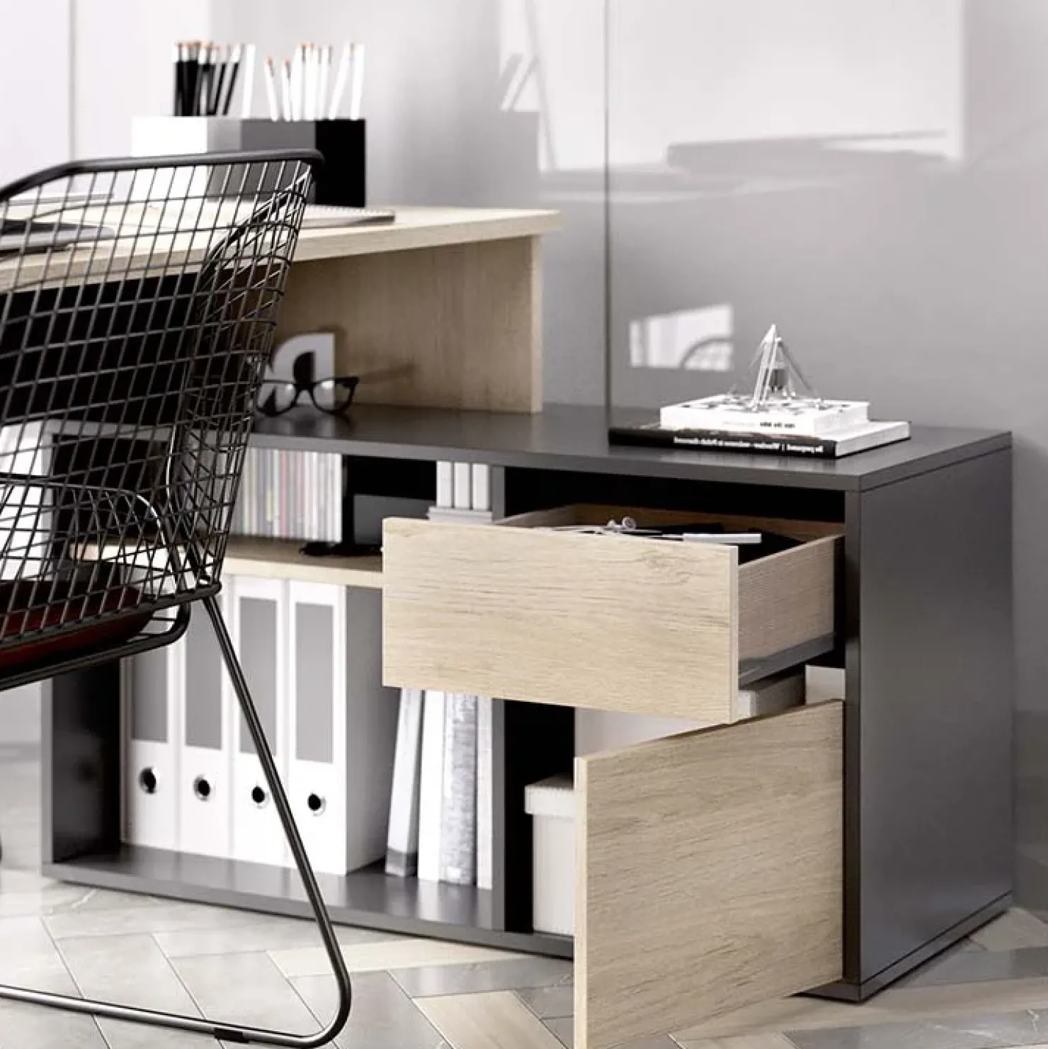 Pratica e funzionale, è dotata di: un’ampia superficie di lavoro, due vani a giorno, un cassetto ed un’anta, spazio perfetto per riporre tutti i documenti.