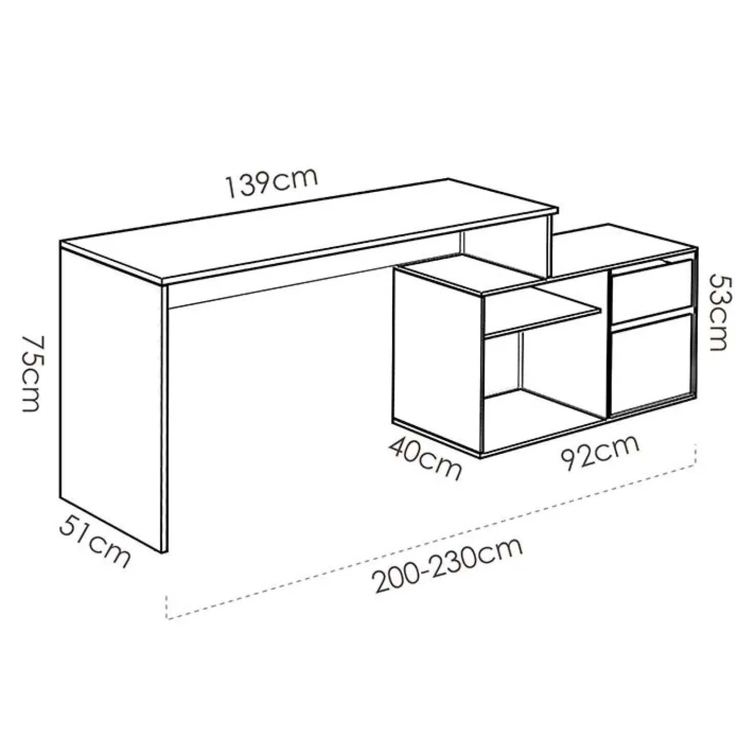 - Dimensioni opzione B: L.200-230 x P.51 x H.75 cm