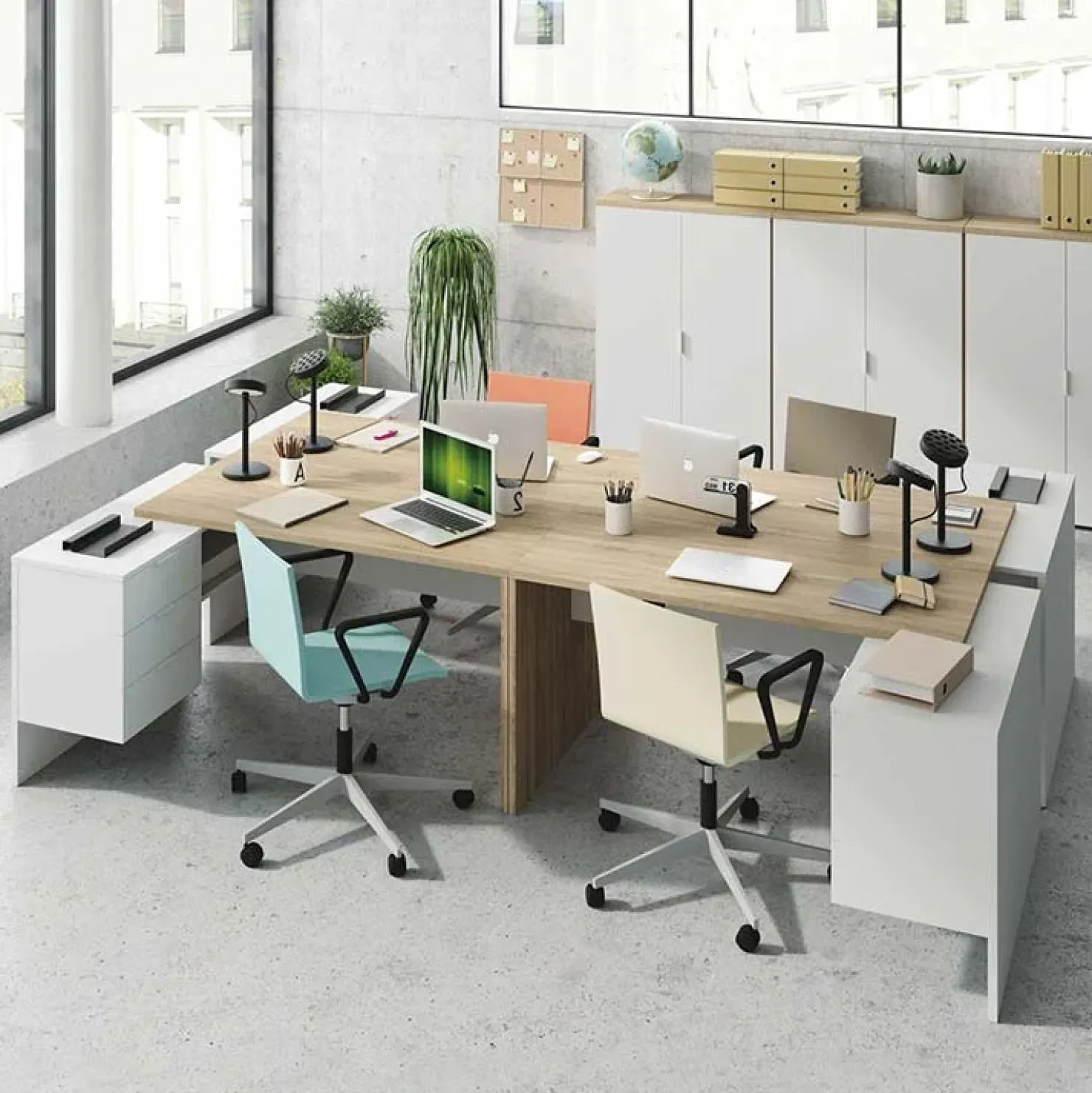 Abbina Work al mobile ufficio della stessa collezione e combinala con altre scrivanie Work per creare più postazioni di lavoro e completare il tuo ufficio moderno!