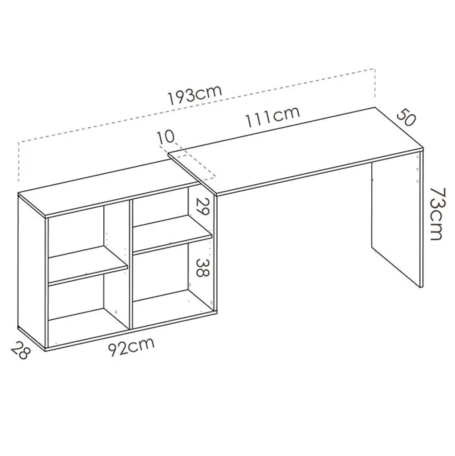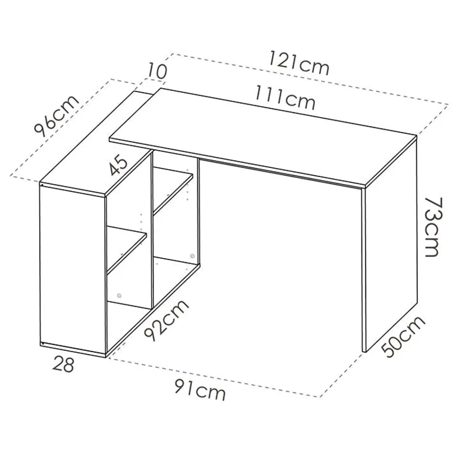 Funzionale e versatile, questa scrivania è perfetta per tutte le diverse necessità, essa infatti può essere montata sia come scrivania angolare che come scrivania allungabile.