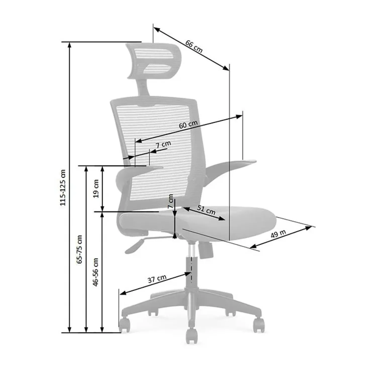 - dimensioni totali : H 115-125 x L 64 x P 62 cm
