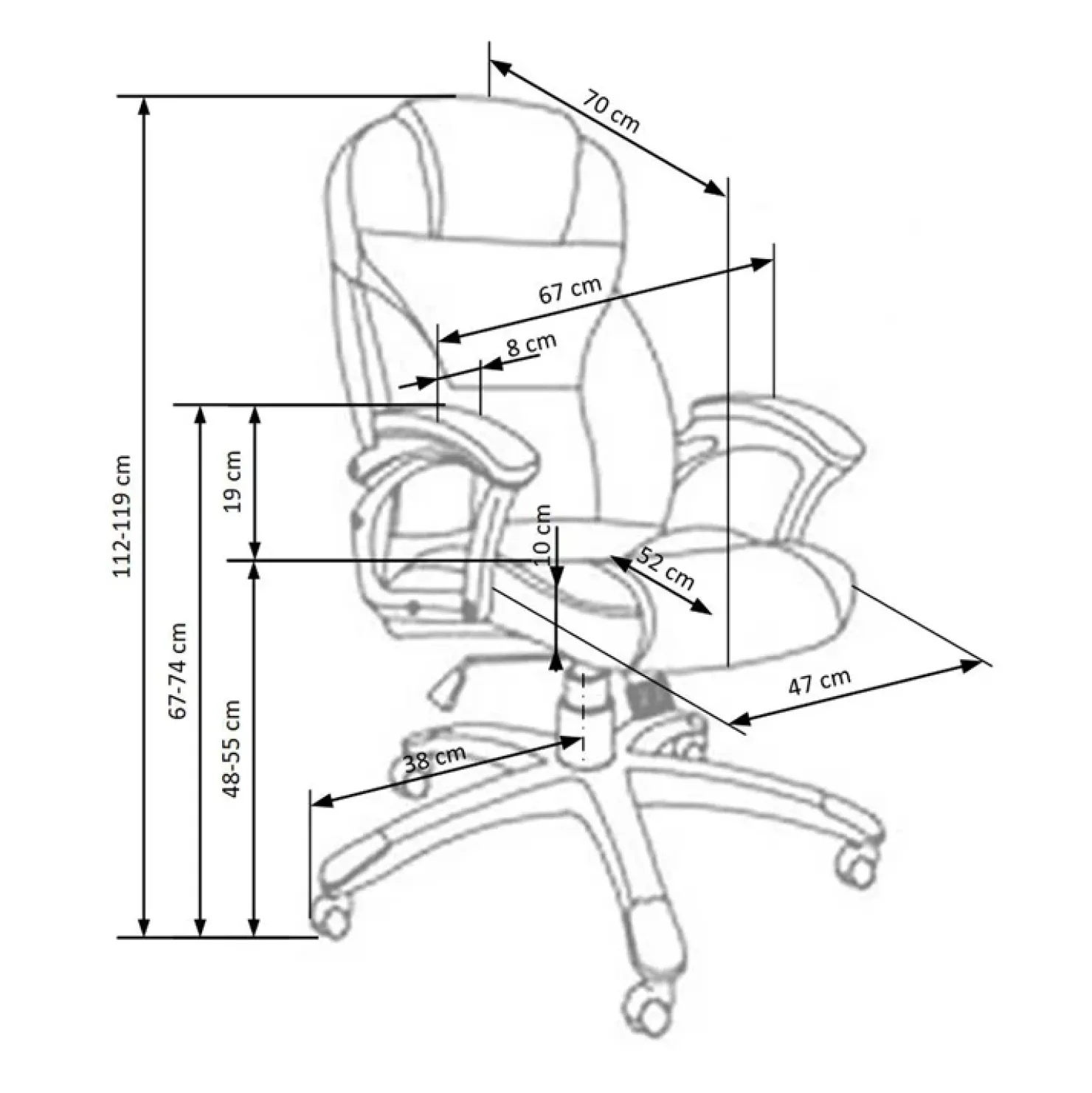 L.67 x H.112/119 x P.70 cm