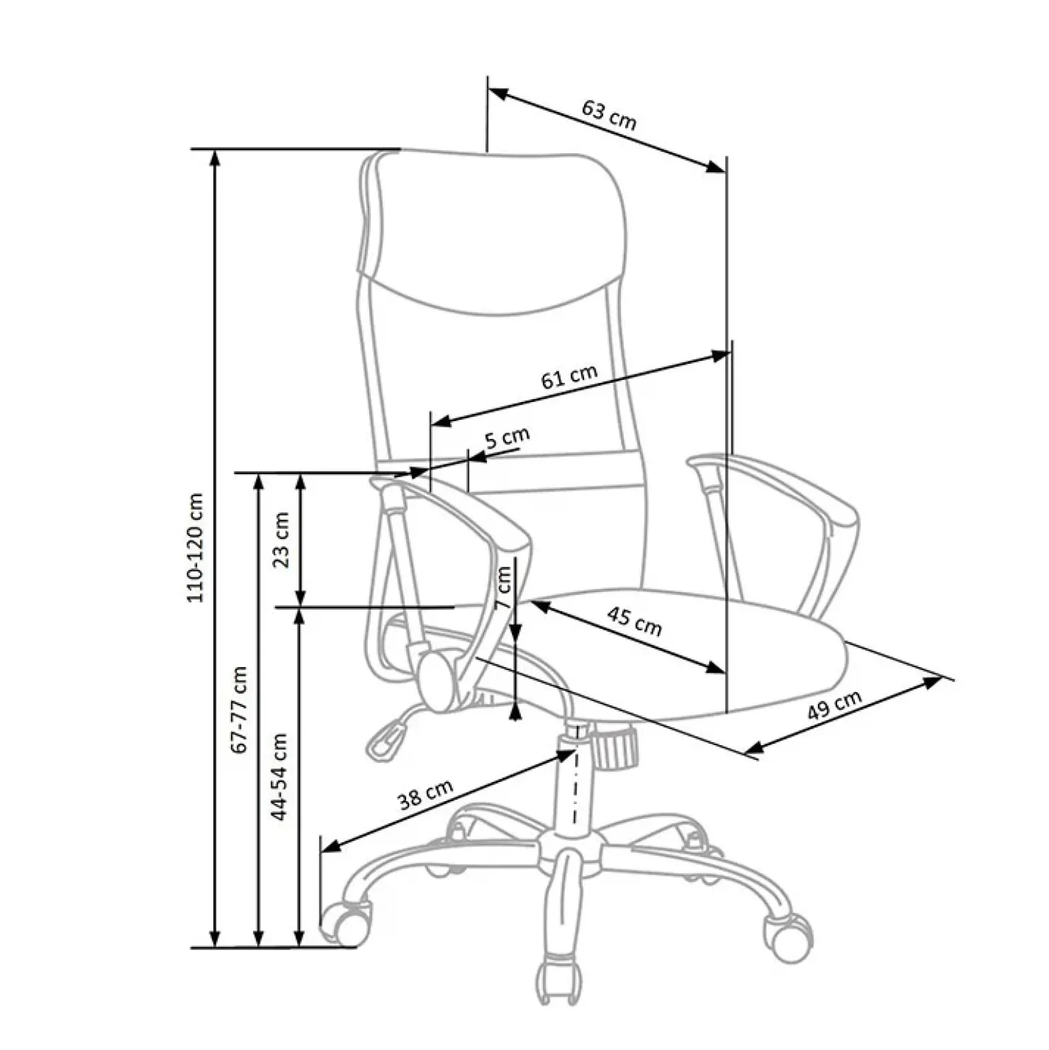 - dimensioni totali: P63 x L61 x H110/120 cm
