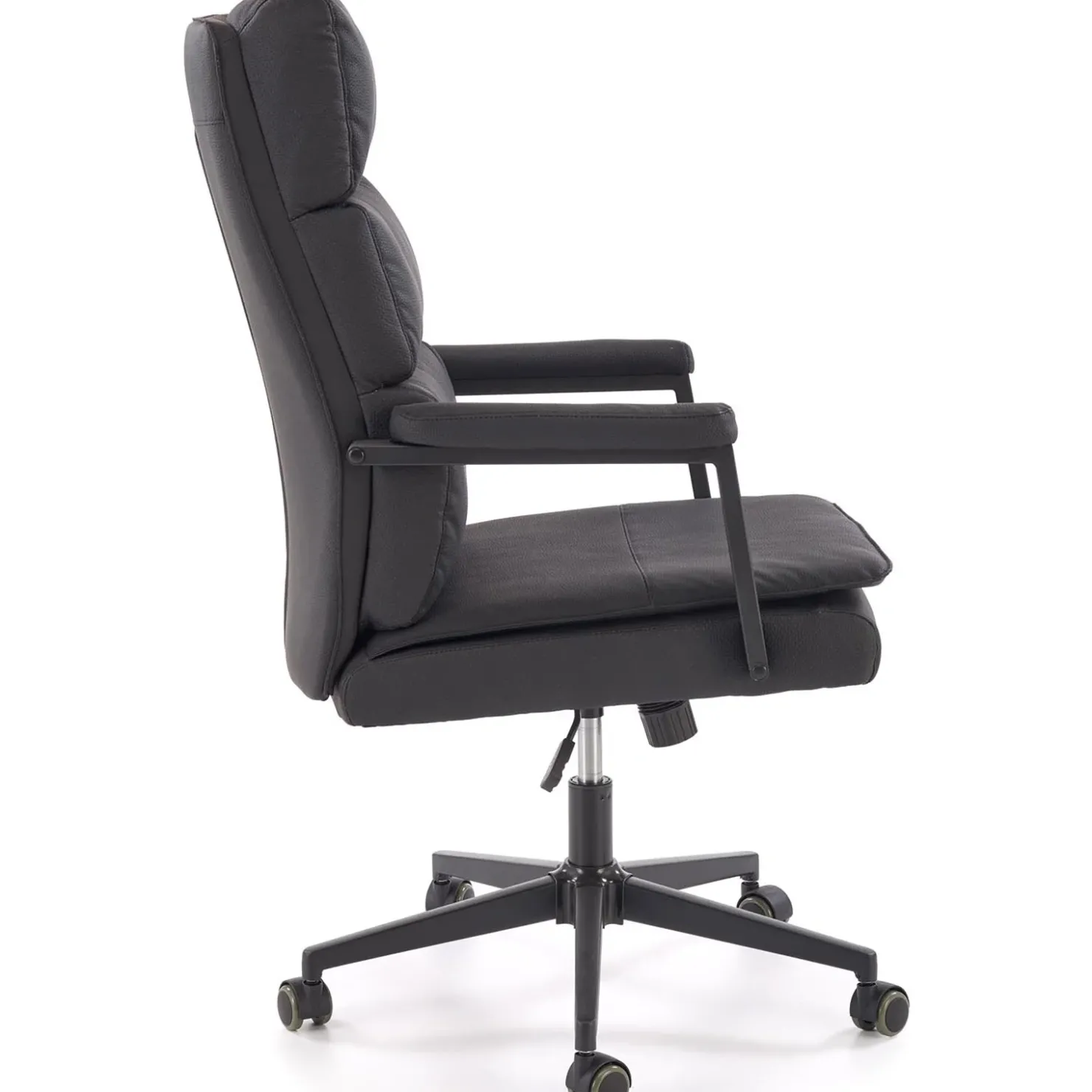 Sedia da ufficio con ruote e braccioli imbottita in ecopelle nero Yara
