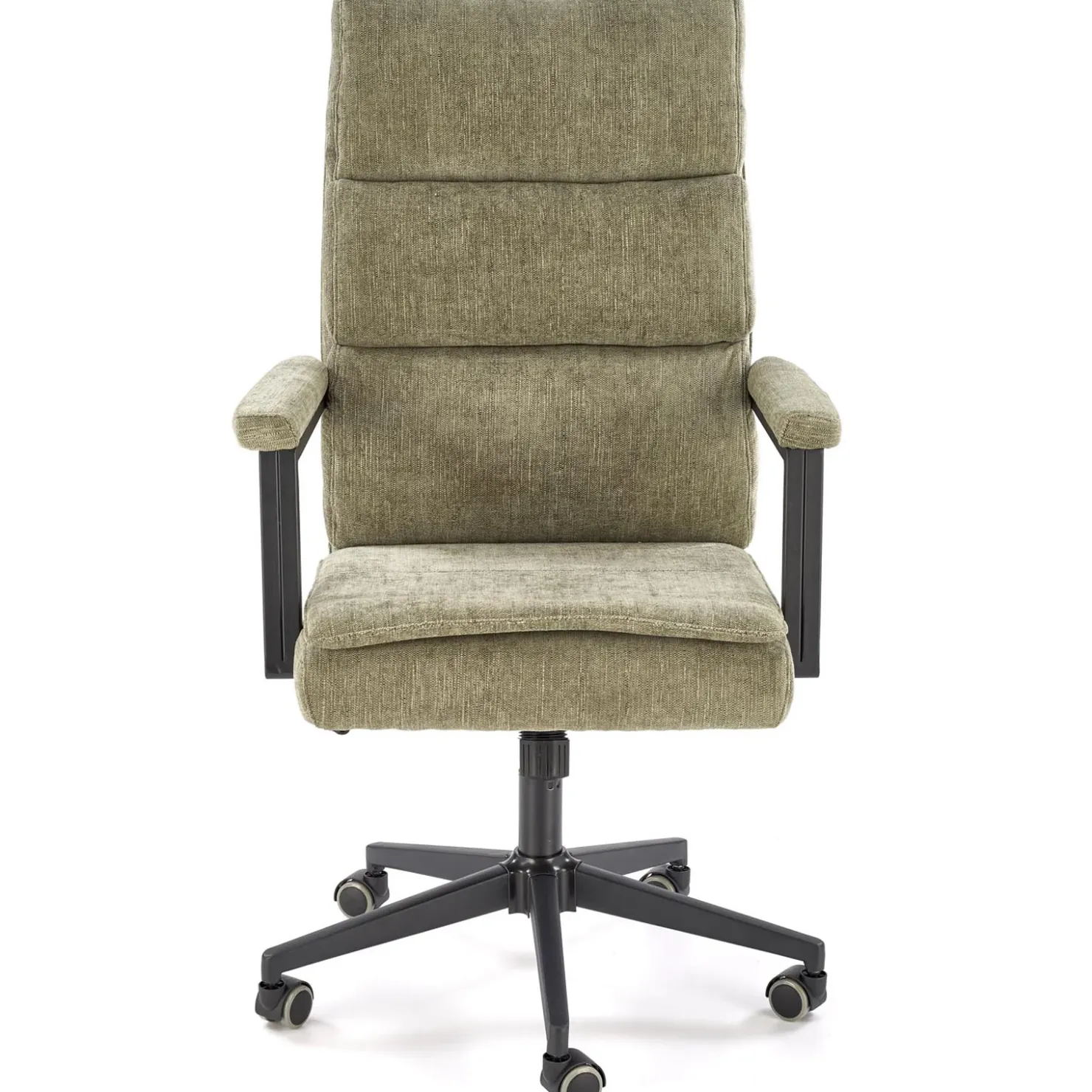 Sedia da ufficio con ruote e braccioli in tessuto verde oliva Yara