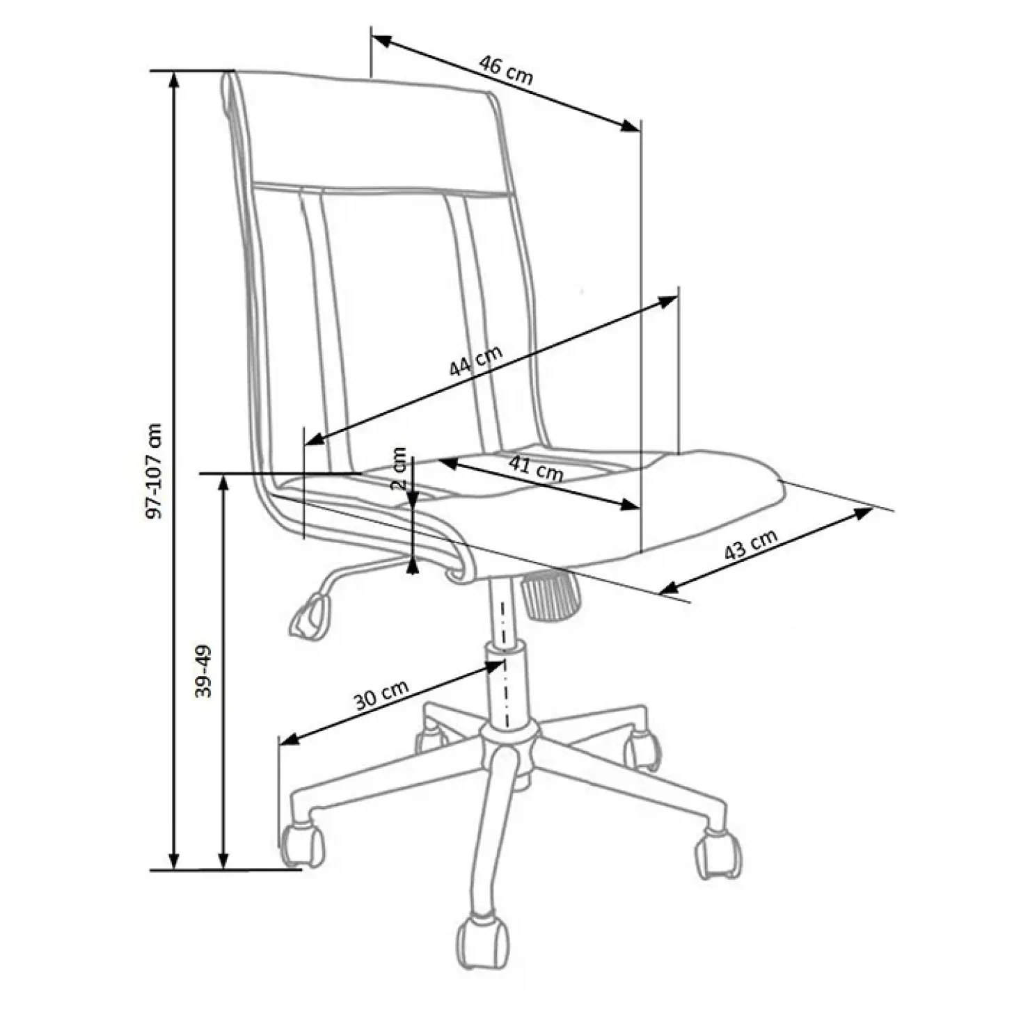 - dimensioni totali : H 97-107 x L 44 x P 46 cm