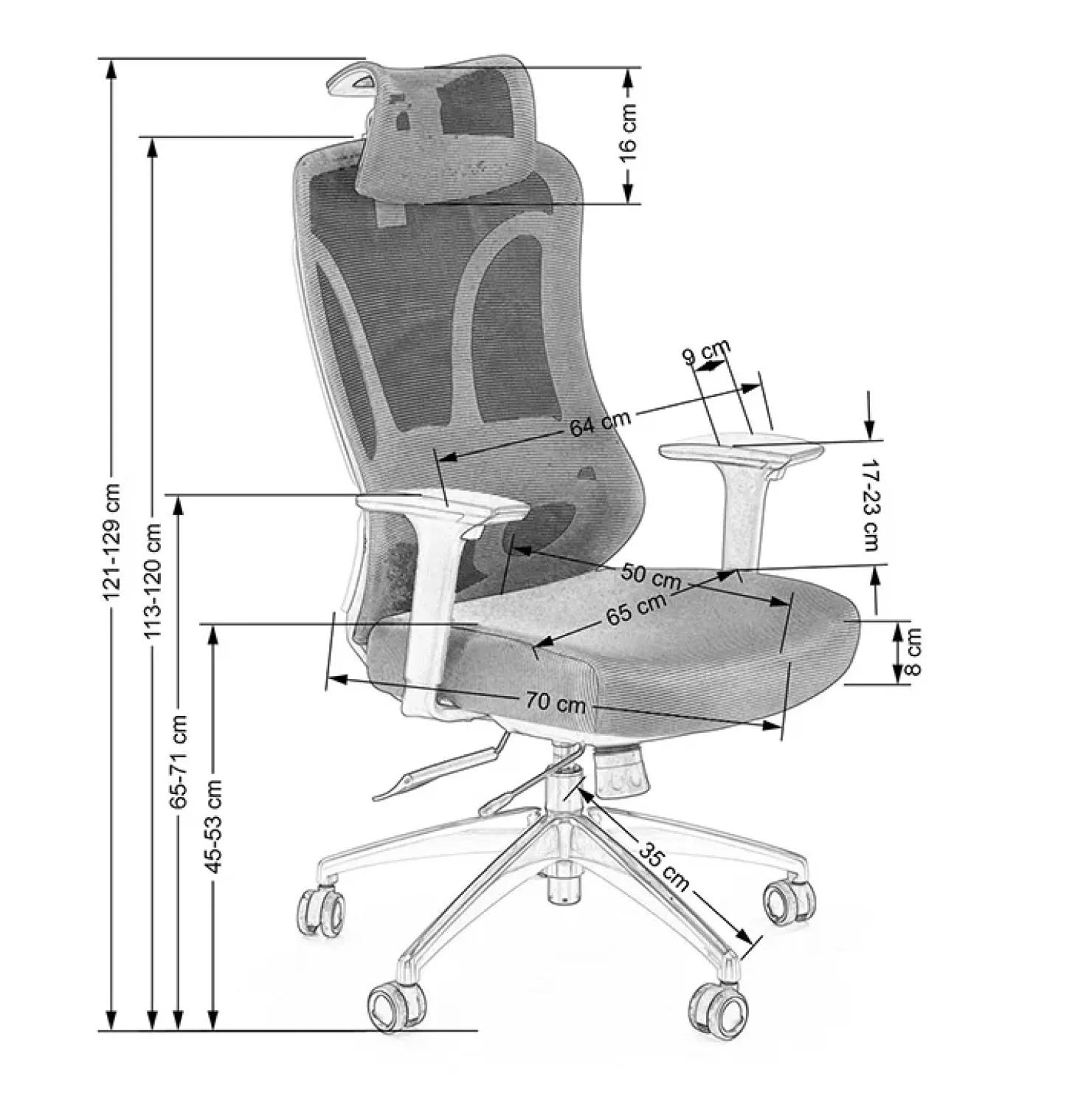- dimensioni: L.64 x H.121-129 x P.70 cm