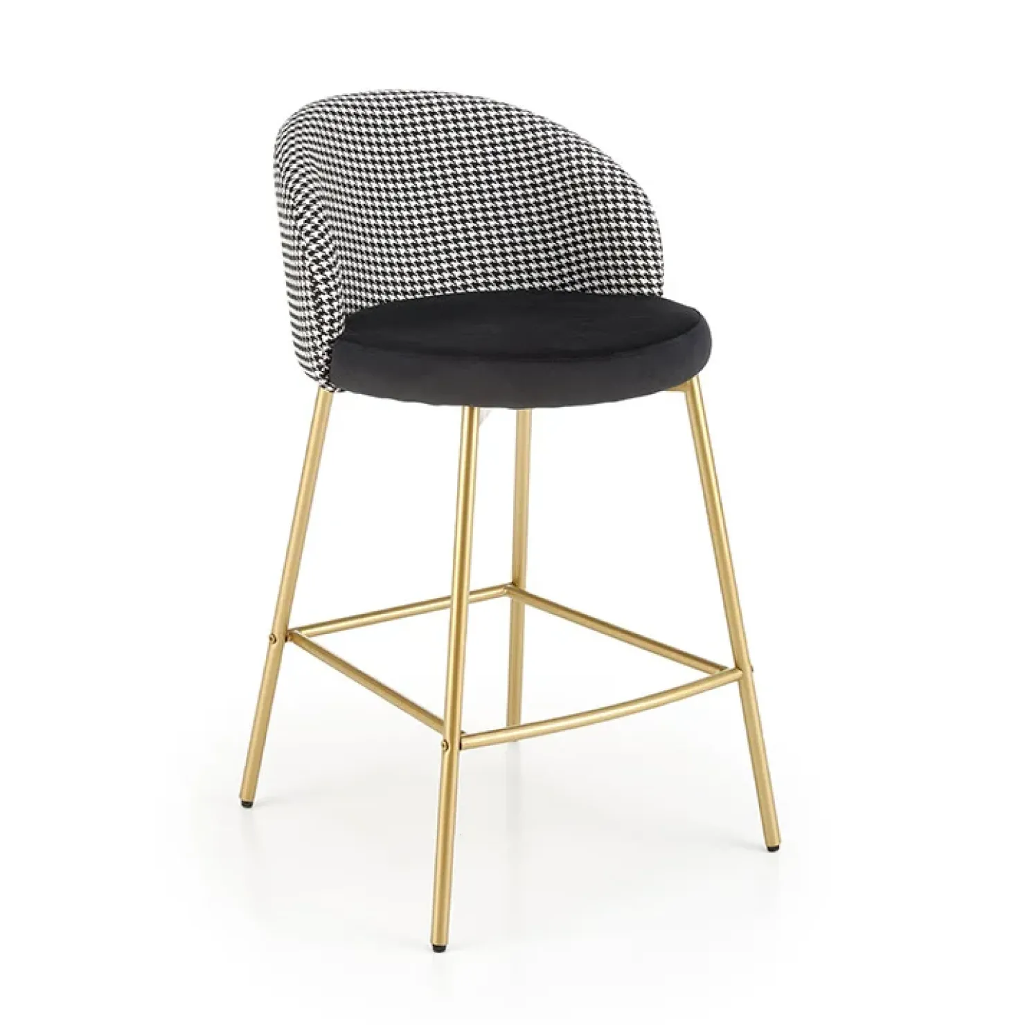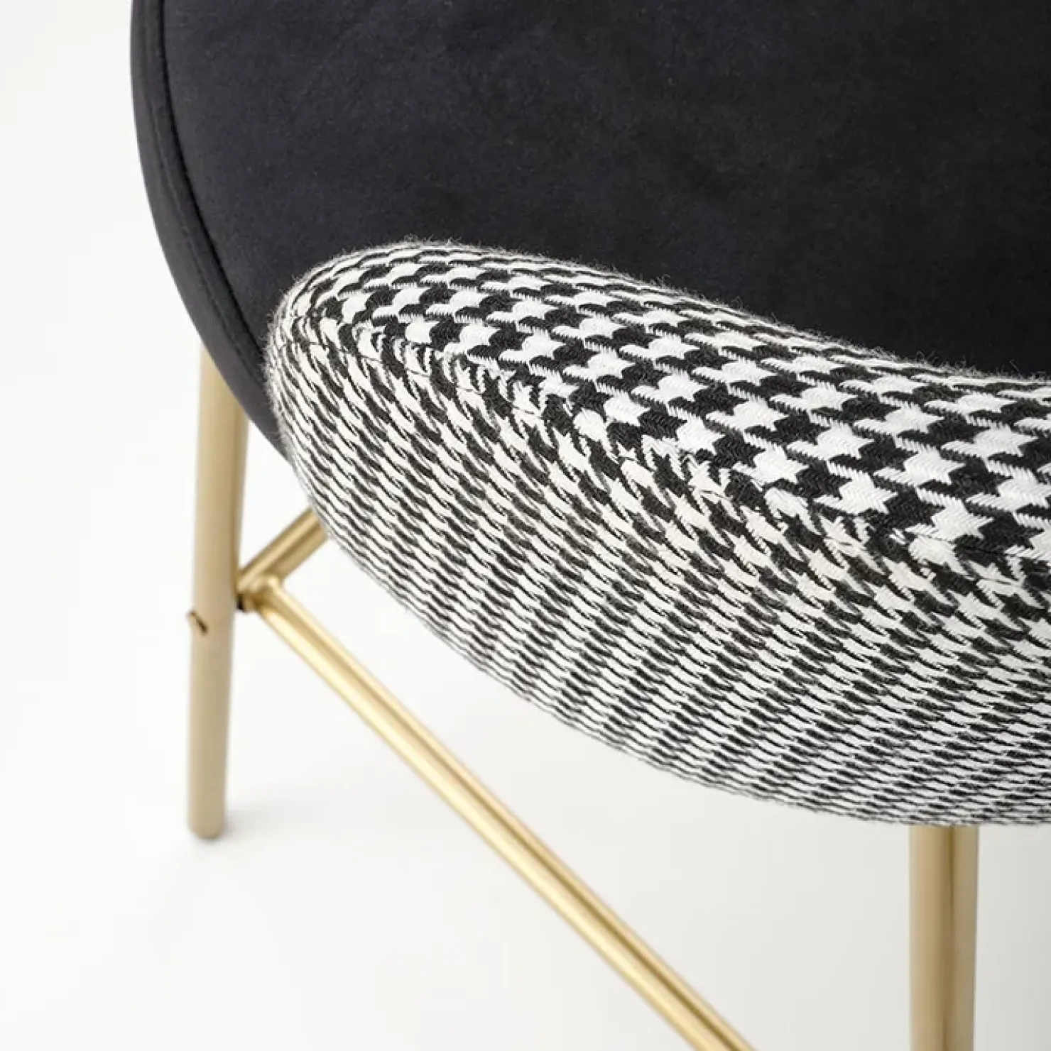Sgabello alto moderno in velluto nero bianco oro Tauret, ideale per creare nel tuo soggiorno un angolo raffinato dove gustare un aperitivo.