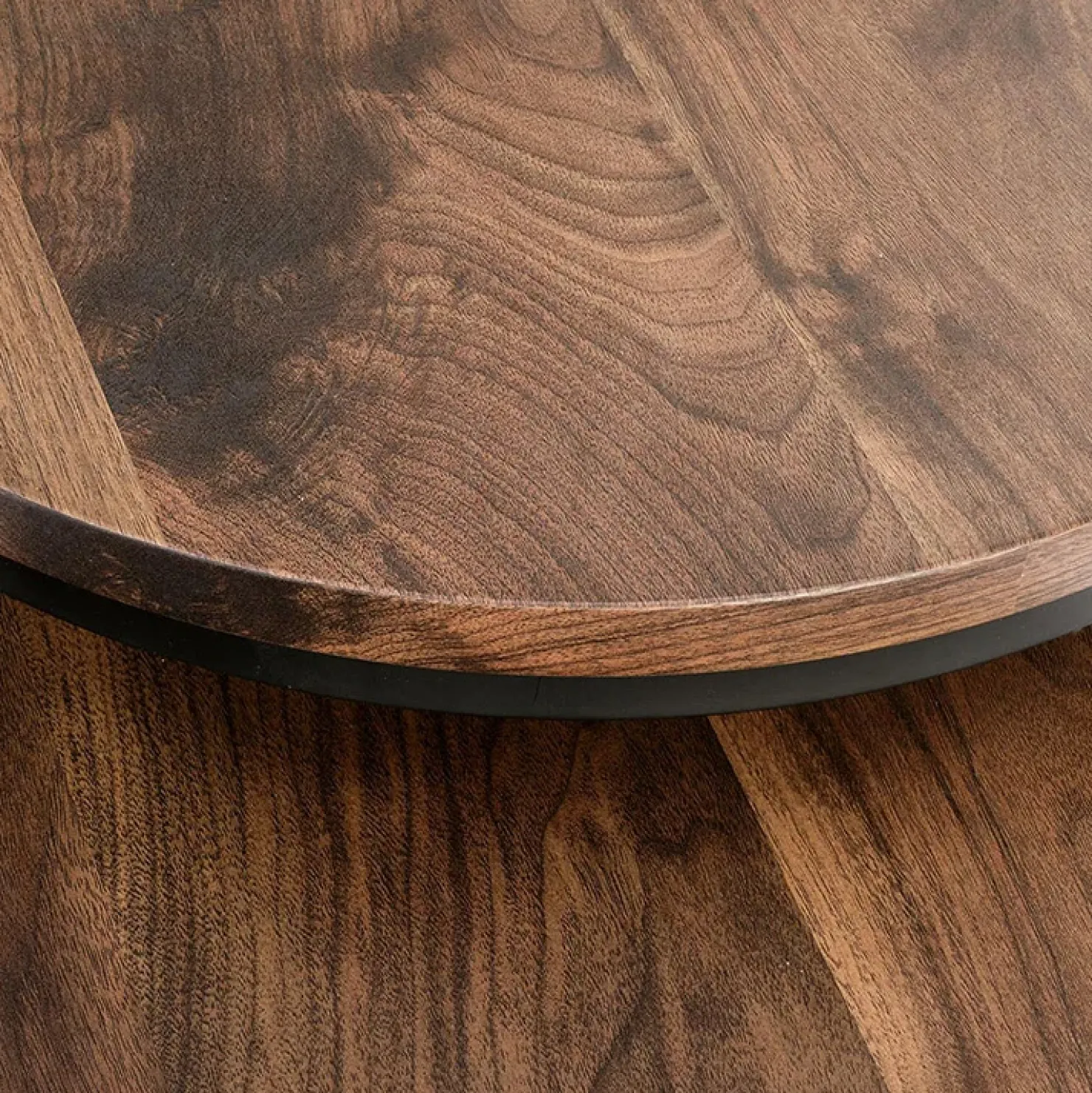 Set tavolini da salotto rotondi noce nero Pueblo, pensati per un doppio abbinamento, accostati uno accanto all’altro oppure divisi all’interno del tuo salotto.