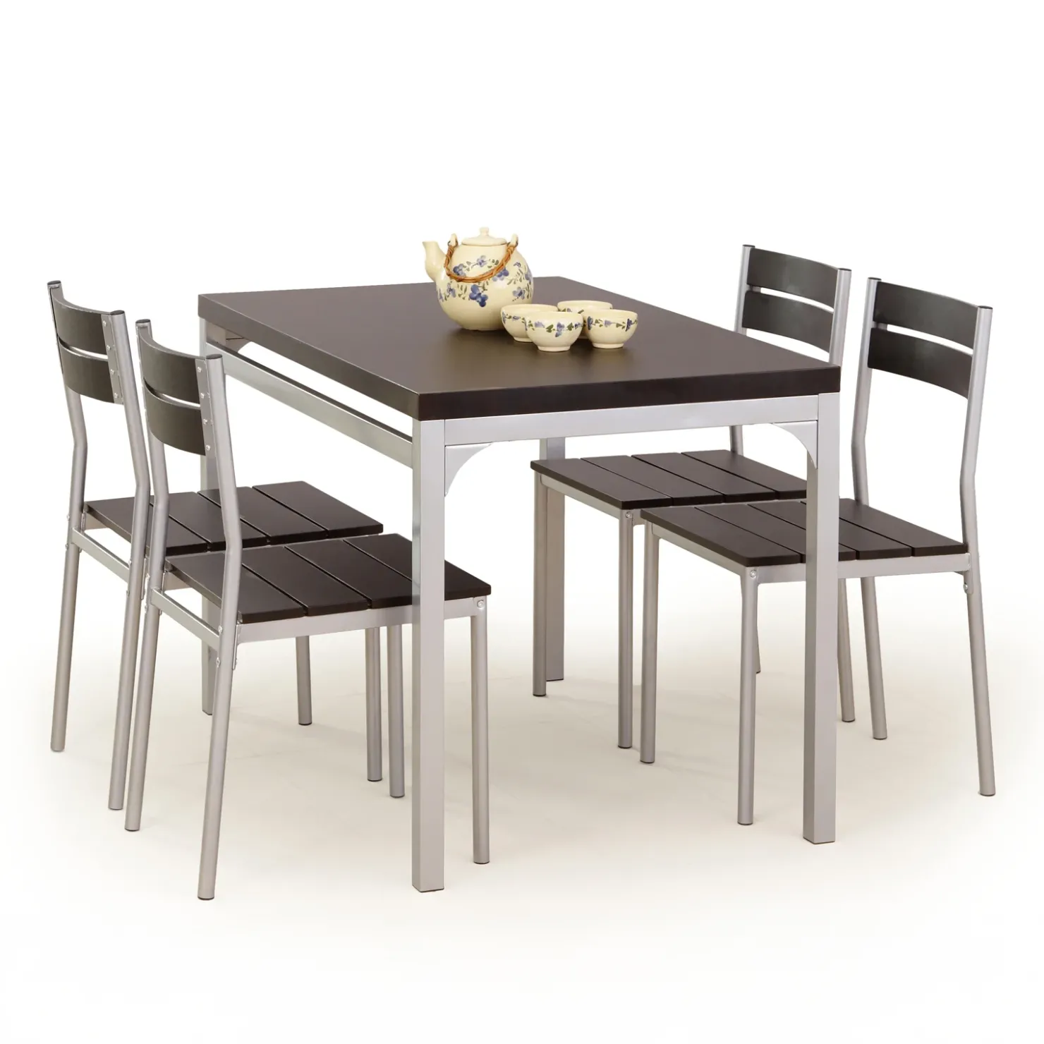 Set tavolo 110x70cm + 4 sedie da giardino moderno wengé acciaio Oasi