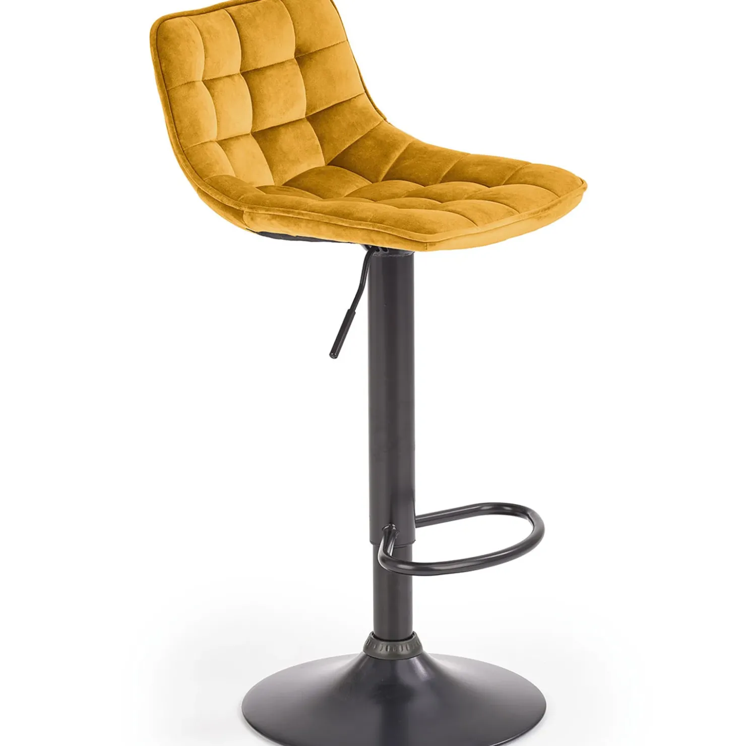 Sgabello imbottito regolabile di velluto giallo senape nero Fost