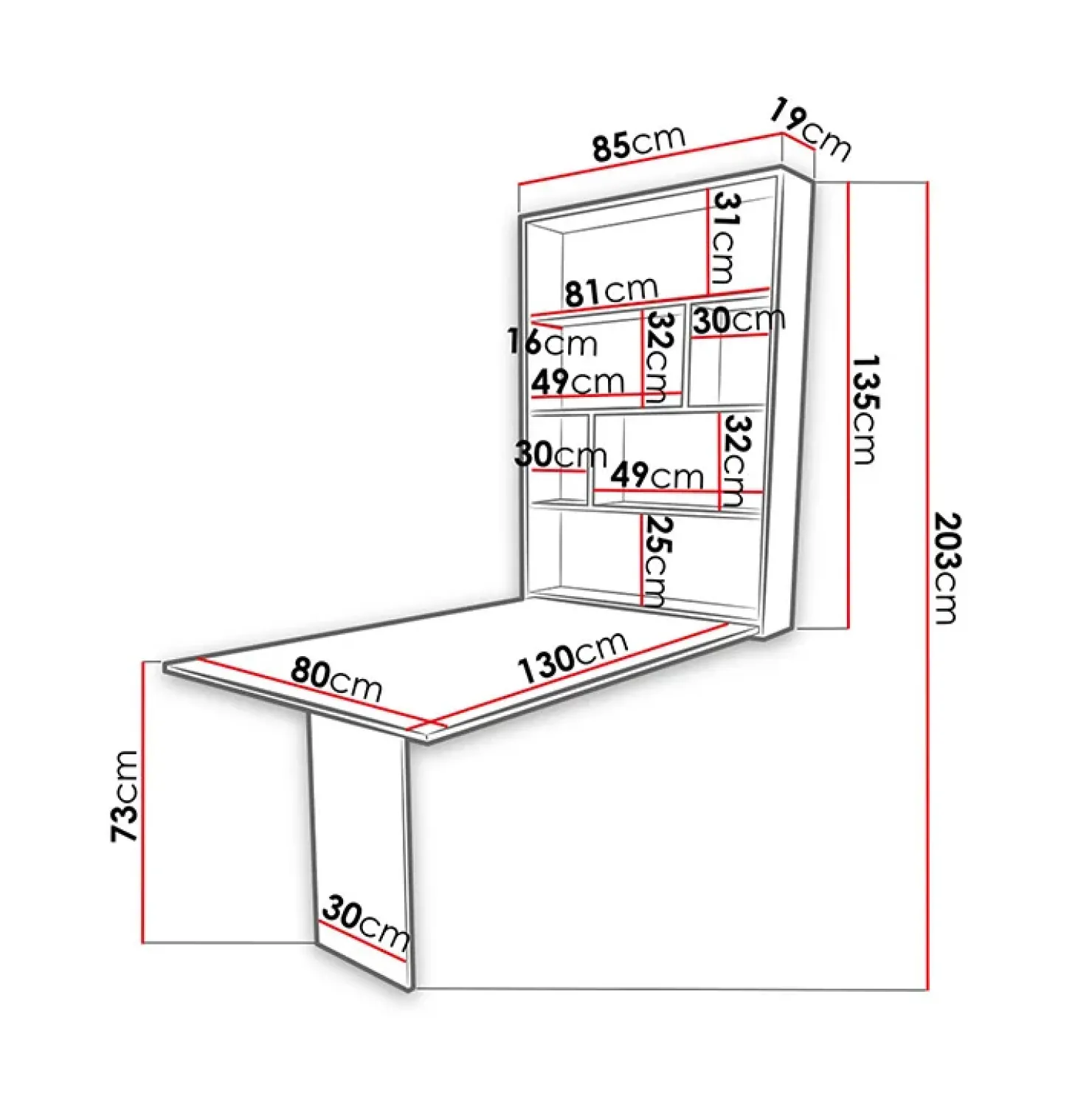 - dimensioni totali chiuso: L.85 x H.135 x P.19 cm