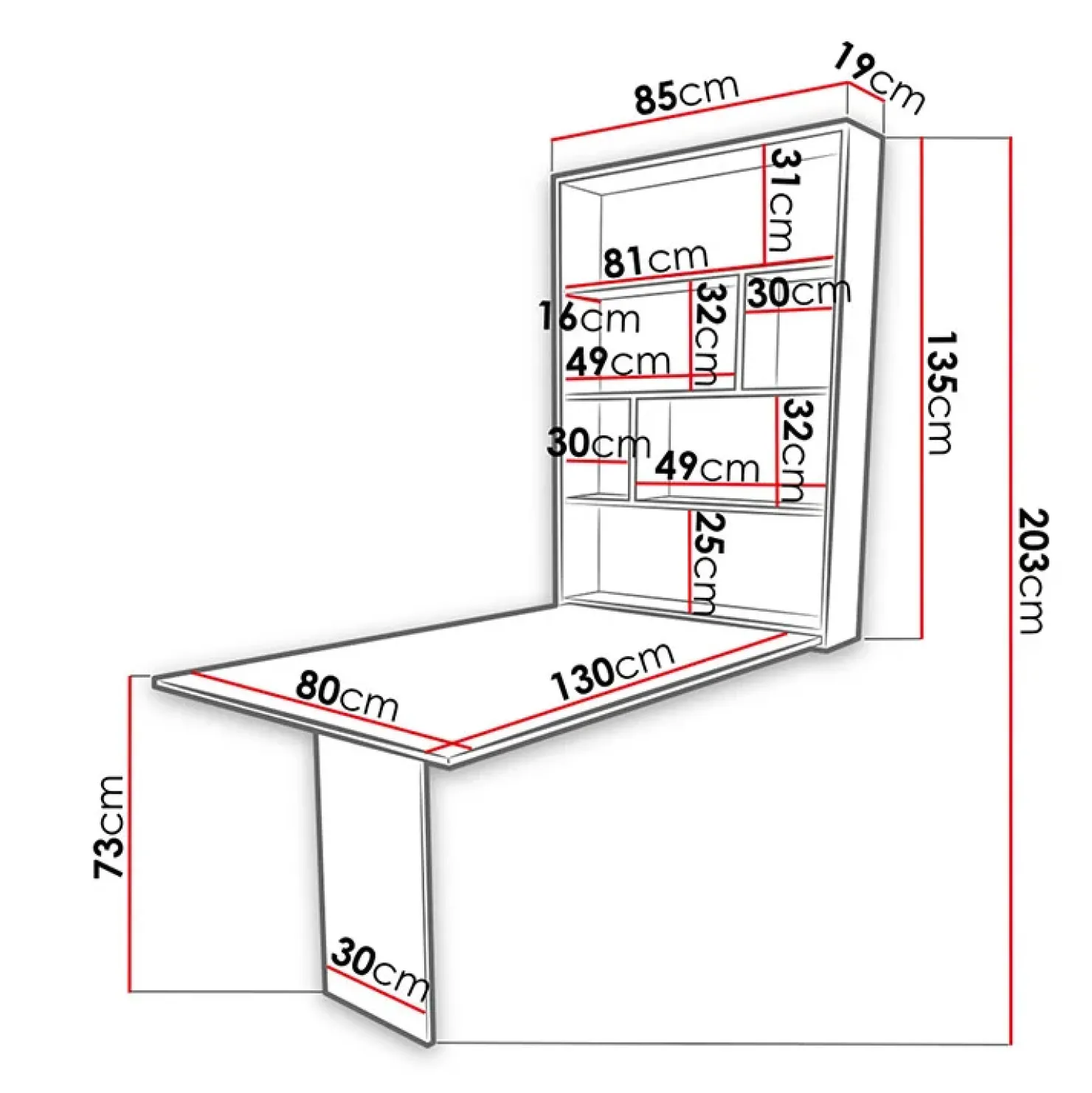 - dimensioni totali chiuso: L.85 x H.135 x P.19 cm