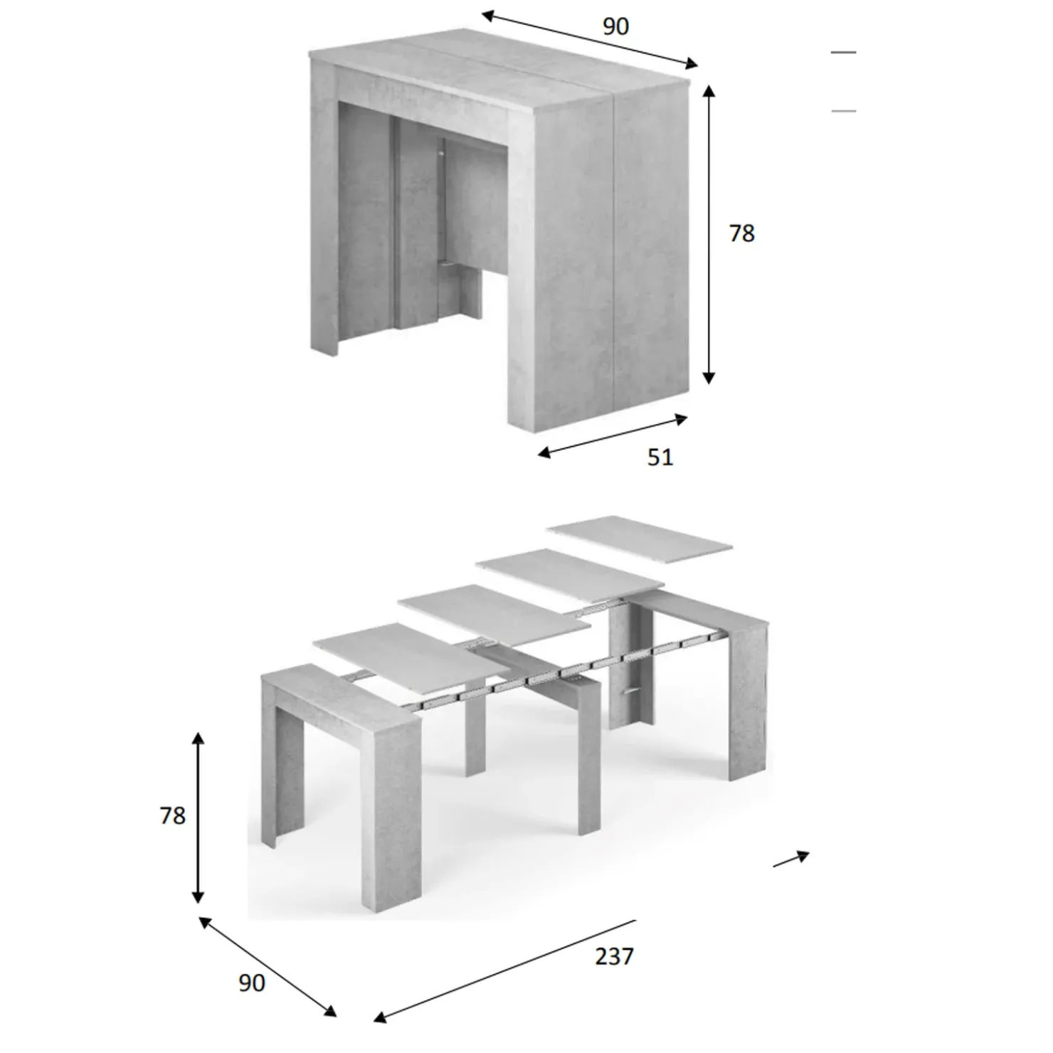 | Dimensioni | L.51/237 x H.78 x P.90 cm |