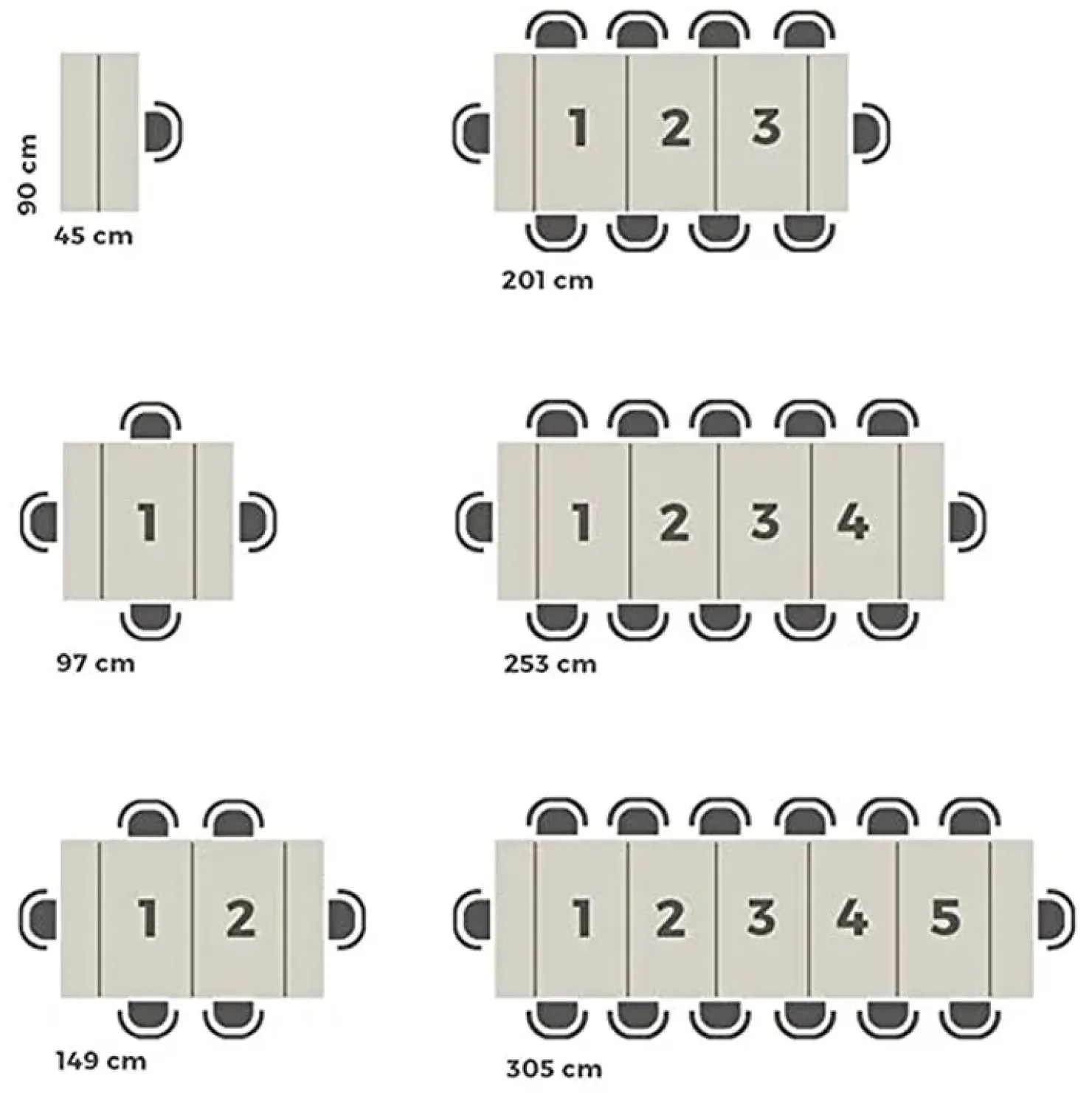 Le dimensioni del tavolo chiuso sono 51 x 90 x 77 cm (Larghezza x Profondità x Altezza), mentre raggiunge una lunghezza massima di 300 cm quando completamente aperto, offrendo una soluzione pratica e funzionale per ogni occasione.
