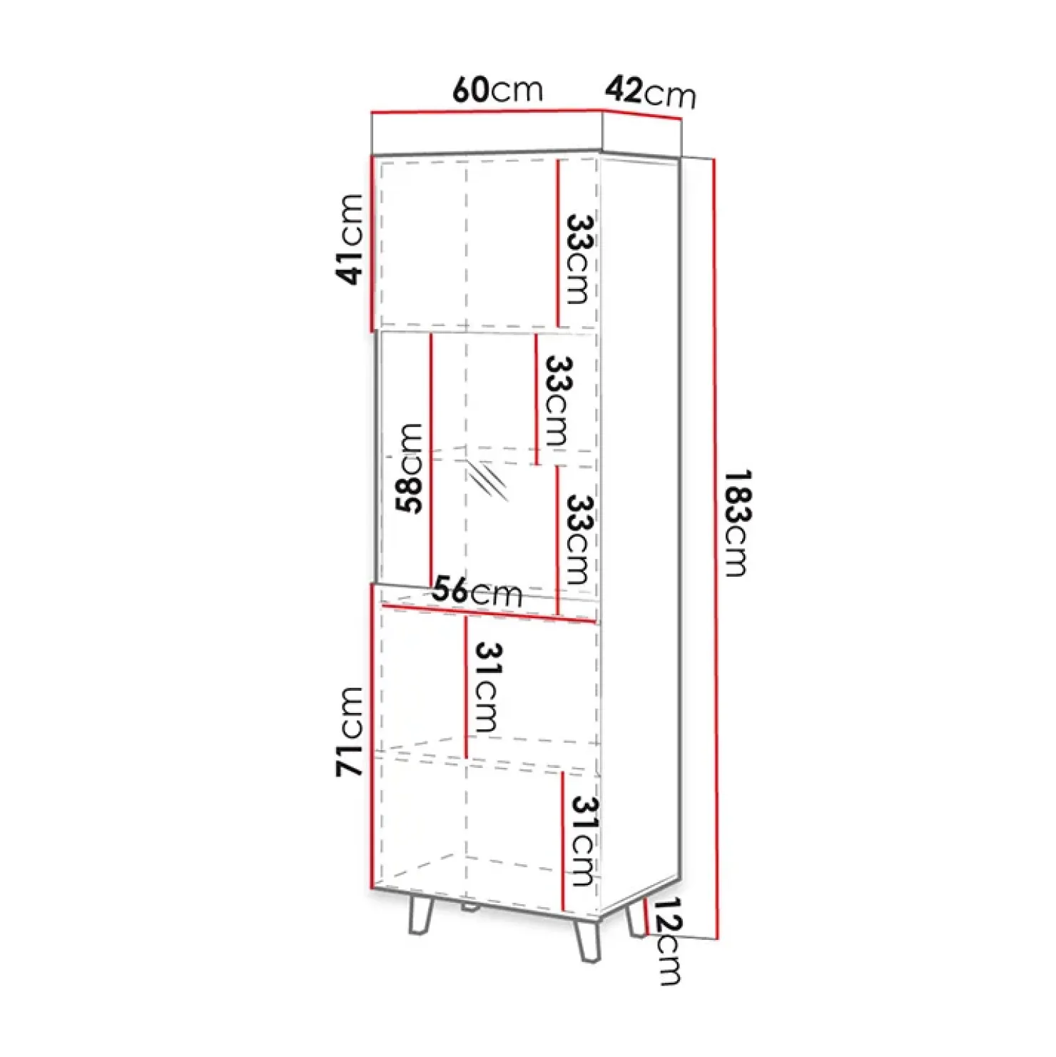- Dimensioni totali: L.60 x H.183 x P.42 cm