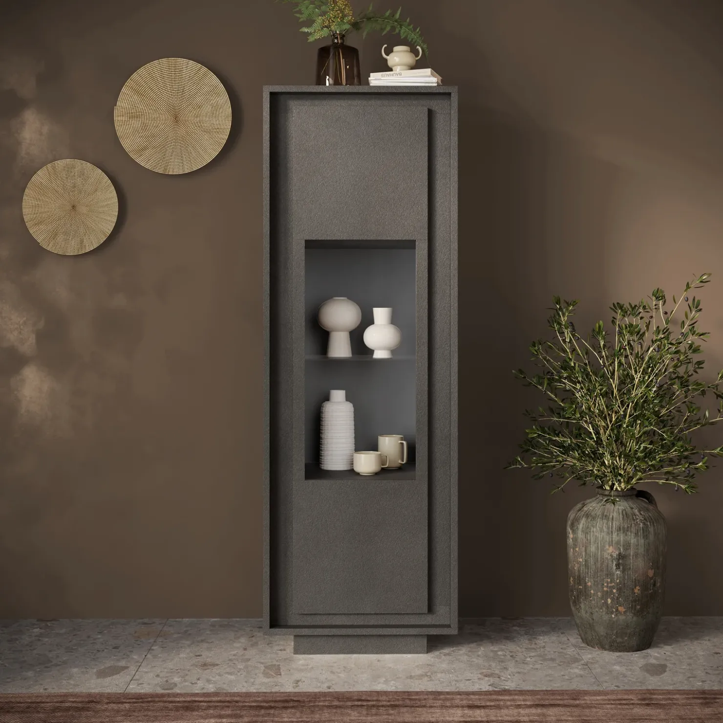 Garnero Arredamenti Vetrinetta 67x197h cm 1 anta moderna Deluxe Antracite Discount