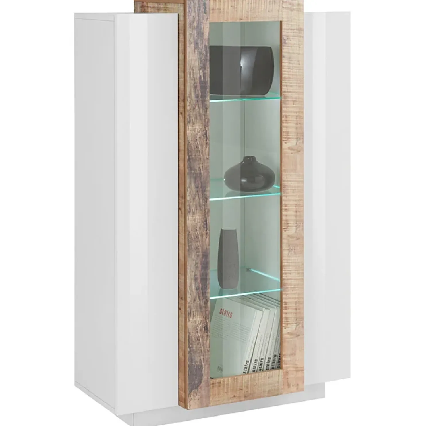 Garnero Arredamenti Vetrinetta 80x121h cm 2 ante bianco lucido rovere Milos Gihome® Bianco Lucido – Rovere Rustico